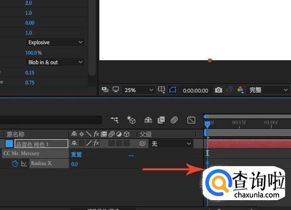 接下来开始进行设置,在开始的位置打开关键帧,将RADIUS X的数值设置为0。
