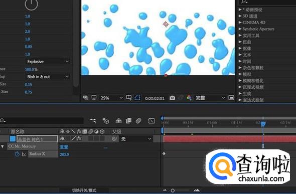 创建纯色固态层之后,选择“效果-生成-MR MERCURY”即可载入效果,在左上角可调整数值。