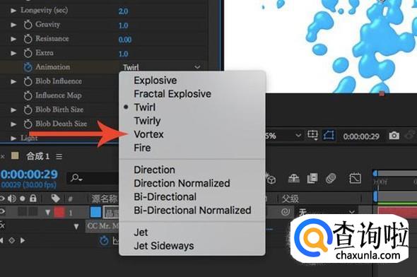 之后在效果控件面板中点击ANIMATION,这里可以调整效果的形态,查看预览进行调整。