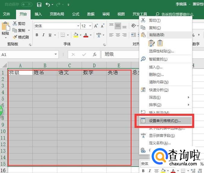 选中我们要加边框的表格,如图,然后点击鼠标右键,再选择“设置单元格格式”。