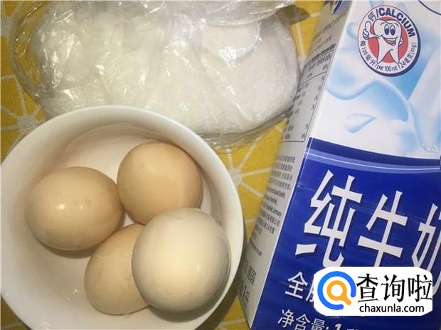 鸡蛋、纯牛奶、白砂糖、蛋糕粉