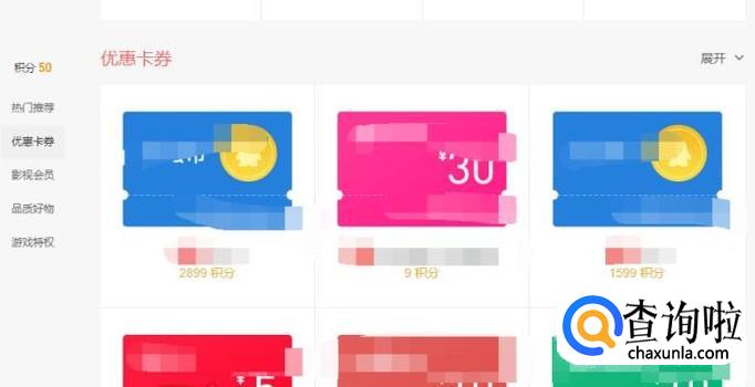 将该页面向下滑动,即可看到积分兑换的物品,如图所示。
