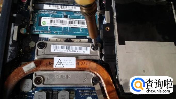 在CPU上面覆盖的散热器四个螺丝旁边都有数字标识,要按照顺序依次拧下四个螺丝。