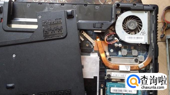 再把底部最大的一块盖板的螺丝拧松,取下盖板,就可以看到散热器了。