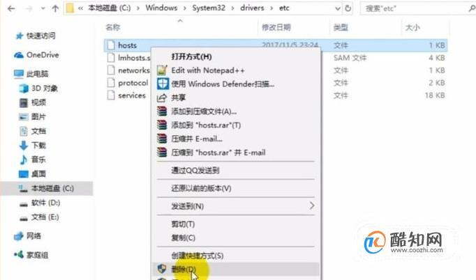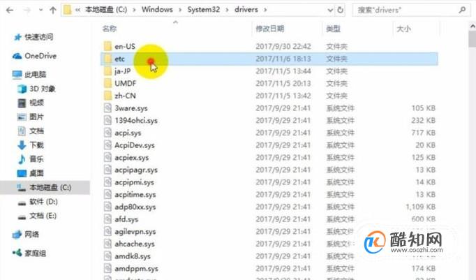 进入我的电脑,在C盘中Windows中的system文件夹里面的etc文件夹里找到hosts文件。