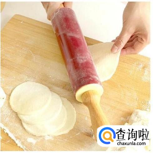 将面切成小块,用一边手托着面,一边手拿擀面棍推,做出圆形来,有形状了才能包,一个手那面皮,一个手加馅,包起来更加方便快捷。