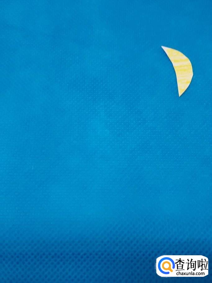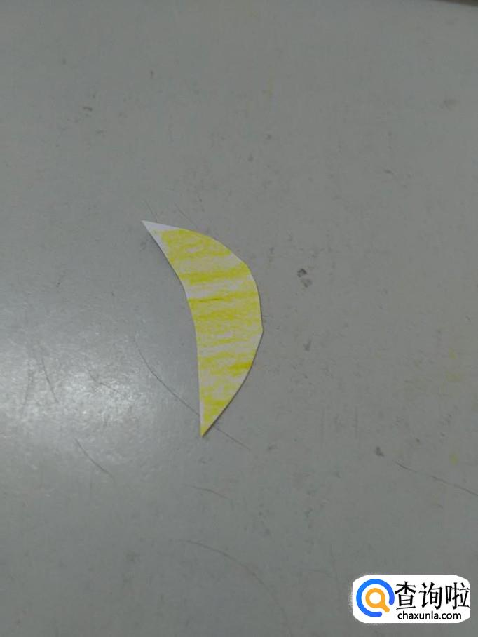 用剪刀从黄纸上剪下一个弯弯的小月牙。