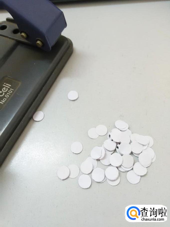先用打孔器压出许多白色的圆形,当作白色的小星星。