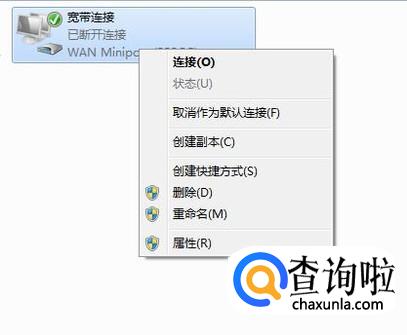 然后右击宽带连接,如下图所示。