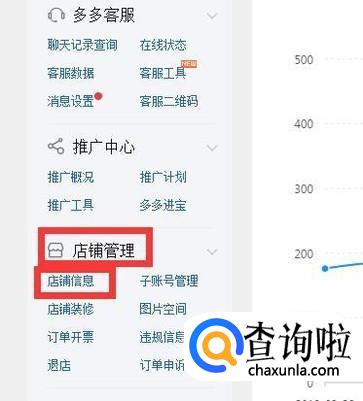 进入商家后台,往下滑动页面,找到店铺管理,点击店铺信息。如图所示。