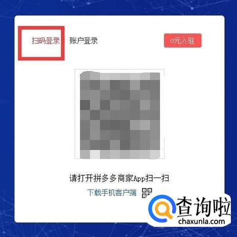 然后点击扫码登录,打开拼多多商家版APP扫码登录。如图所示。