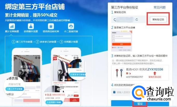 然后复制验证码,输入商品链接,点击验证即可完成。如图所示。