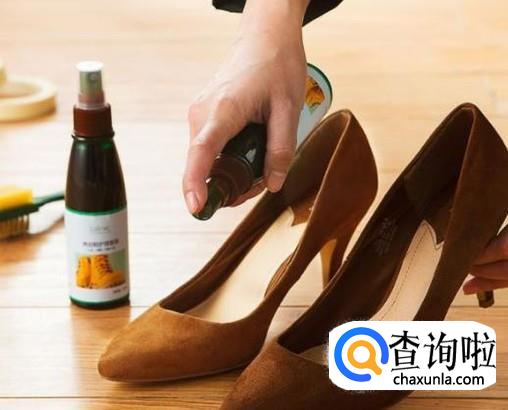 以上程序完成了以后,还要给麂皮鞋做一个防水工作,可以直接购买专用的防水喷雾,直接把它喷在鞋子的表面,这样操作以后,鞋子的表面就会形成一层防水的薄膜,后面在穿鞋子的过程中,就不会那么容易沾染污渍了。