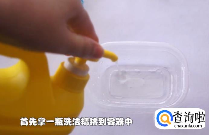 首先取一个干净的带盖的容器(建议用一次性的盒子);将洗洁精挤一些到容器中。