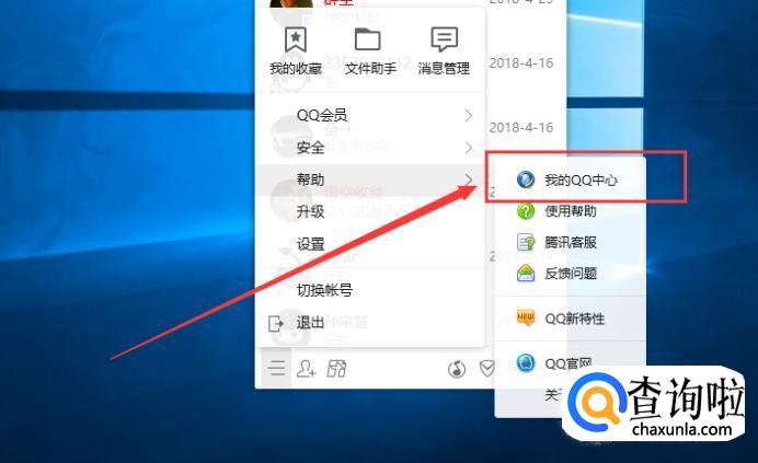 接下来继续点击QQ左下角的三个横线,选择我的QQ中心,如下图所示