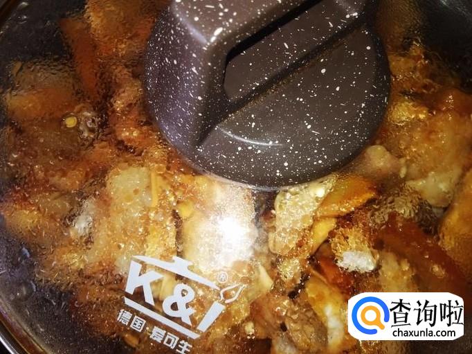 焖焗到闻到蒜米的焦香味,打开盖子把菜翻转,再下小半碗水进去。