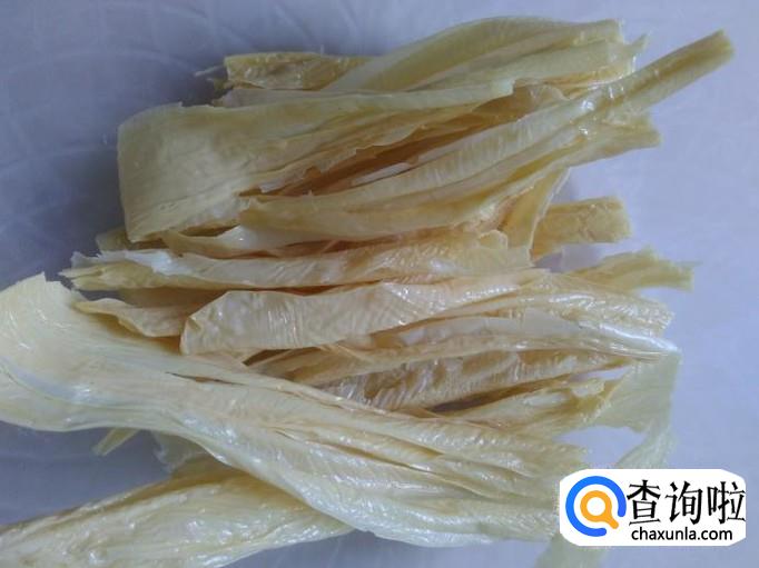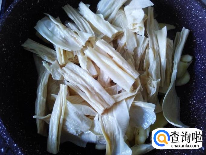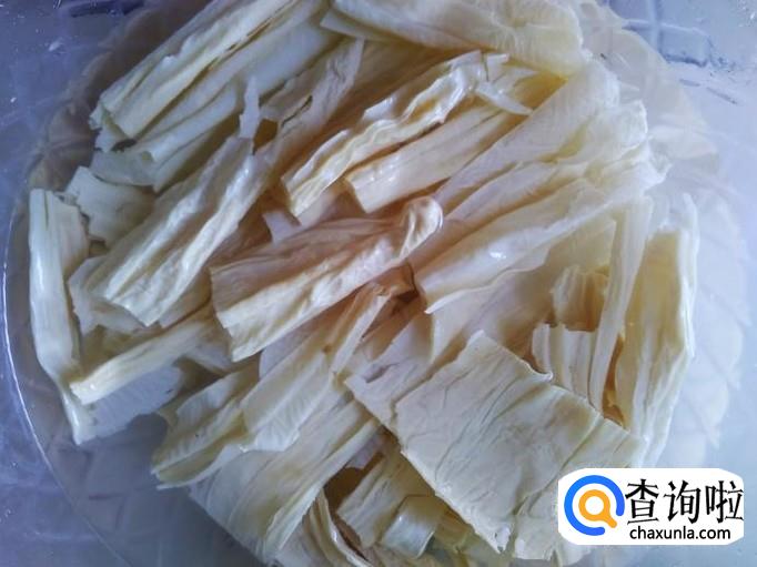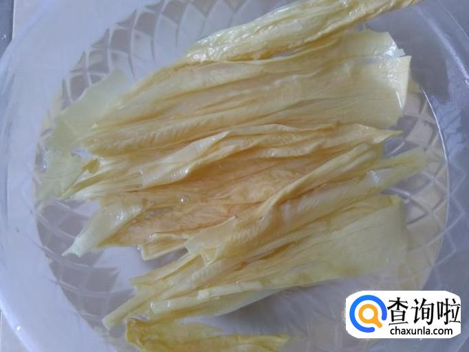 首先把腐竹放到水里泡发,然后用剪刀剪成一段段。
