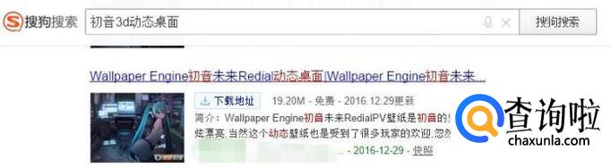 在这里,我们就可以看到初音3D的桌面动态壁纸,我们下载它,设置就好了,如图。