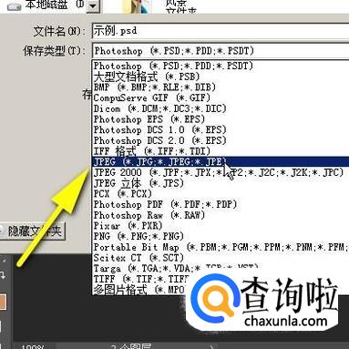 再点击保存类型的下拉按钮,在弹出的各种格式中选择:JPEG;再点保存。