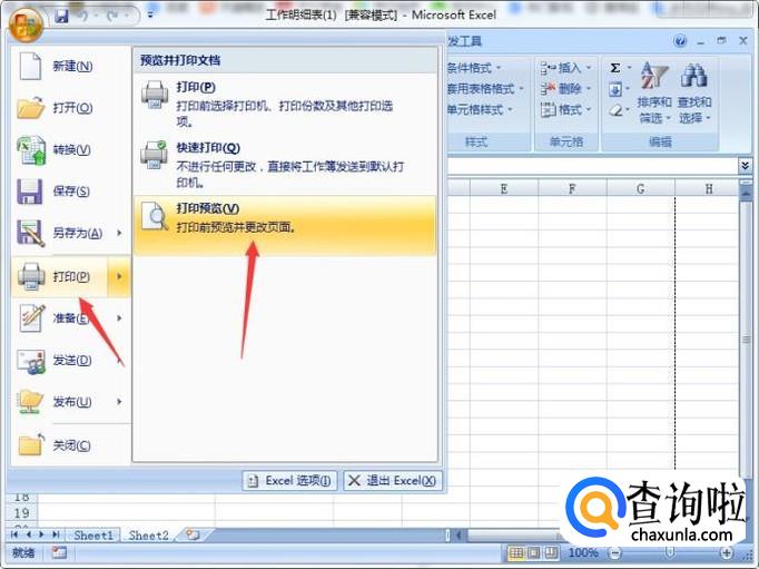 在弹出的选项中,选择打印--打印预览