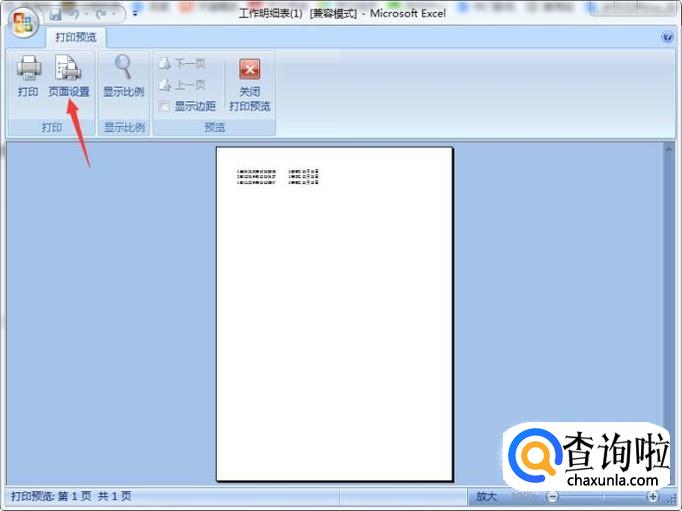 弹出打印预览页面,我们再点击页面设置