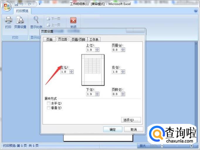 弹出页面设置对话框,我们选择页边距,调节好打印的位置,再点击确定即可