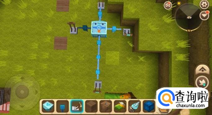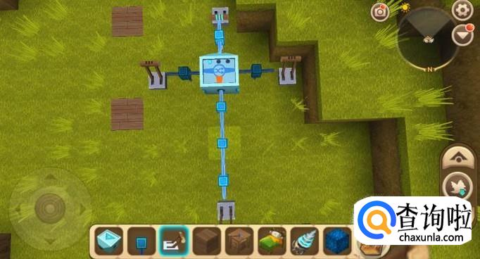 电能比较器是一个检验电能的物品,当然它是可以通电的,我们在其周围连接上蓝色电能线以及开关,打开开关,发现蓝色电能线通电了。