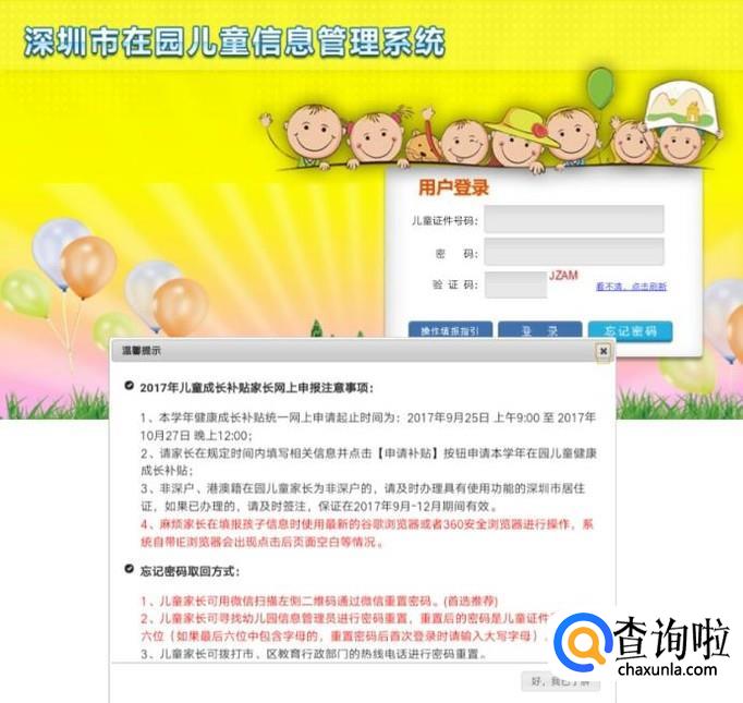 申请学前补助,首先要登录深圳市在园儿童信息管理系统。