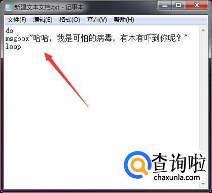 将刚才建立好的文本文档双击打开。输入如下图的代码,中文可改成自己想要的文字。