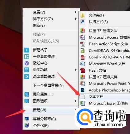 首先,在桌面右击鼠标,在弹出的命令中点击新建,在向右弹出的命令中点击文本文档。