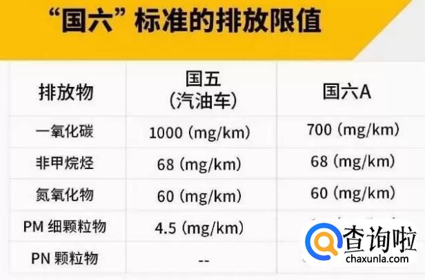 5、“国六a”阶段的排放标准基本与“国五”相同,仅仅是取了“国五”排放要求中的最严值。例如:“国五”要求汽油车的一氧化碳排放量不能超过1g/km,柴油车则不能超过0.5g/km,而在“国六a”中两种车型的一氧化碳排放量均不得超过0.5/km。