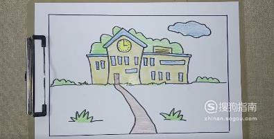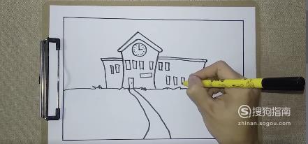 最后学校的简笔画就画好了,如果有彩色铅笔的同学可以给学校上色,这样更好看。