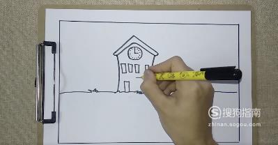 确定位置,画出房顶的形状。