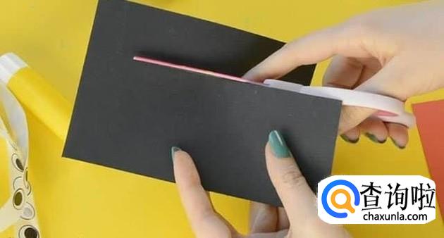 然后用另外一种颜色的卡纸,剪成时针分针的形状,然后将时针分针固定在光盘孔处。