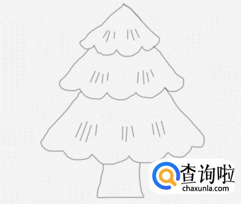 最后再在松树的树叶上画出松树的针叶图形,这样简笔画松树我们就画好了,如图所示: