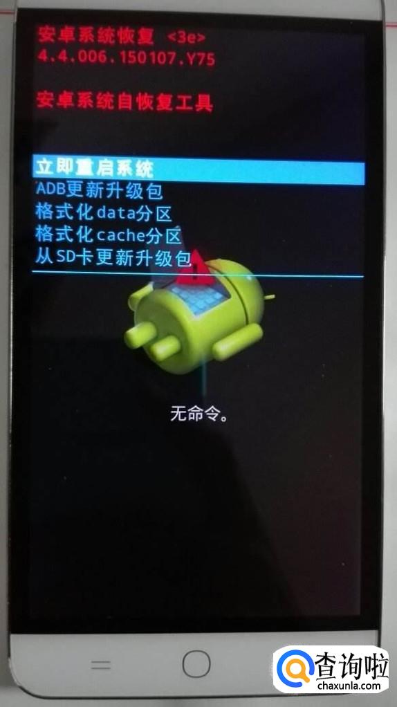 重启手机,双手同时按住音量的上键和电源键,直到出现Recovery Mode,然后等机器人和红色叹号界面出现在点home键进入系统,然后重启手机就可以了