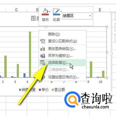 鼠标放在图表上,然后,右击,弹出右键菜单,再点:选择数据