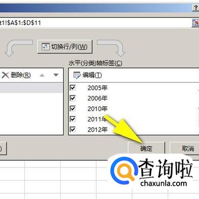 在弹出的轴标签区域设置框中,选择表格中年份这一列。