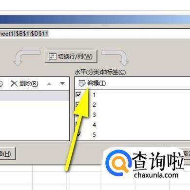弹出一个选择数据源的操作面板。在“水平(分类)轴标签”这里,点击:编辑