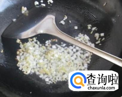锅中放入食用油,烧热后,放入蒜末炝香。