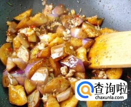 将茄子块放入锅中,加入适量的酱油,翻炒均匀。