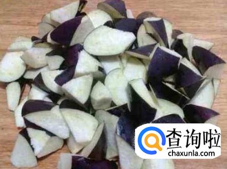 将茄子和青椒切成均匀的块,将蒜切成末。