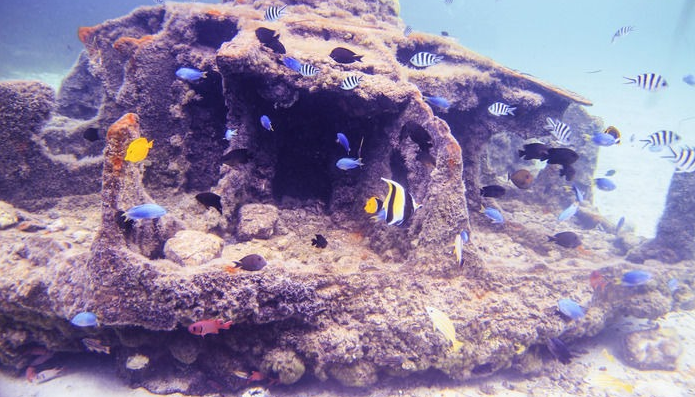 在海底密布的礁石中,有很多洞和缝隙,这里是各种鱼类理想的生活及繁殖处,既少干扰又安全。另外,礁石上长满了各种各样的藻类,是很多鱼类理想的食物。由于珊瑚礁的环境复杂,色彩缤纷,不少鱼隐藏在珊瑚丛中,逃避天敌的追击。