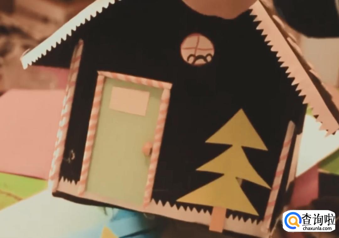 房子的侧边用不织布剪了个小狗和小屋子做装饰。