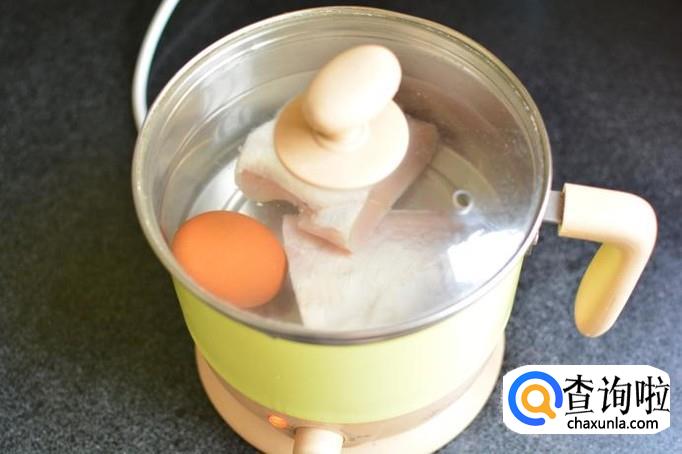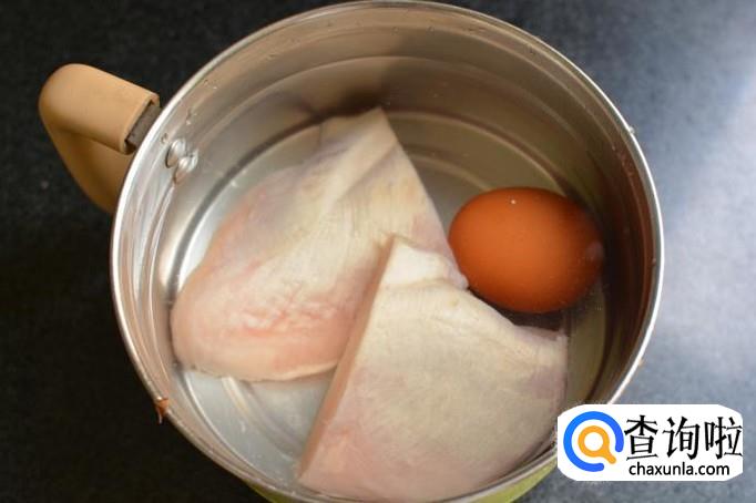 将鸡胸肉和鲜鸡蛋放入锅中水煮,只需要煮大约十分钟左右,水开以后小火,慢炖,将鸡肉煮透,鸡蛋可以在水烧开后两分钟就可以捞出。