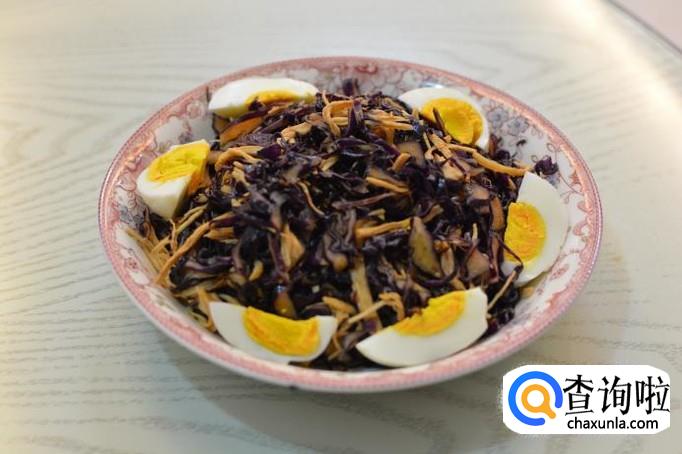 鸡胸肉100g,紫甘蓝250g,鲜鸡蛋一颗。