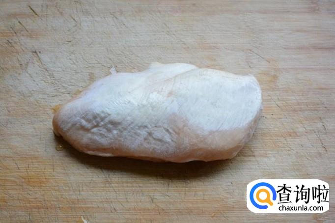 从超市买一块的鸡胸肉,一小颗紫甘蓝,鲜鸡蛋一颗。这里做一份的量只需要半块鸡胸肉和半颗紫甘蓝就足够了。