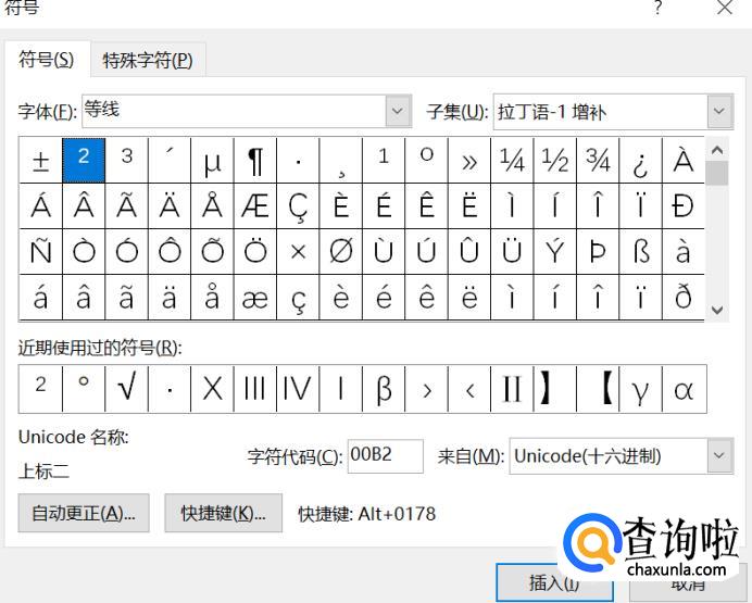 在其中找到平方的符号,选择插入即可。