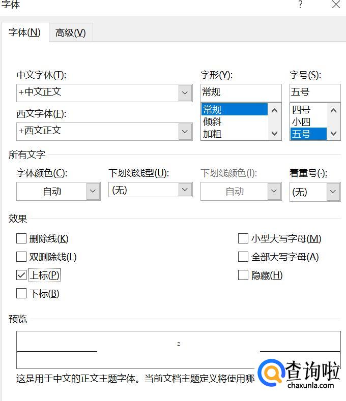 找到上标,在前面的框中打勾,点击确定。