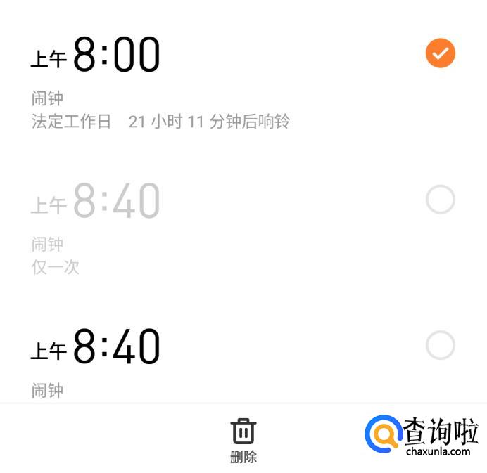 长按可以删除已经设置好的闹钟